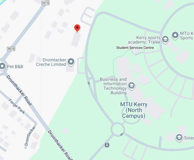 - After entering the MTU main gate take the first exit off the roundabout and Tralee Education Support Centre is the second building on the left.